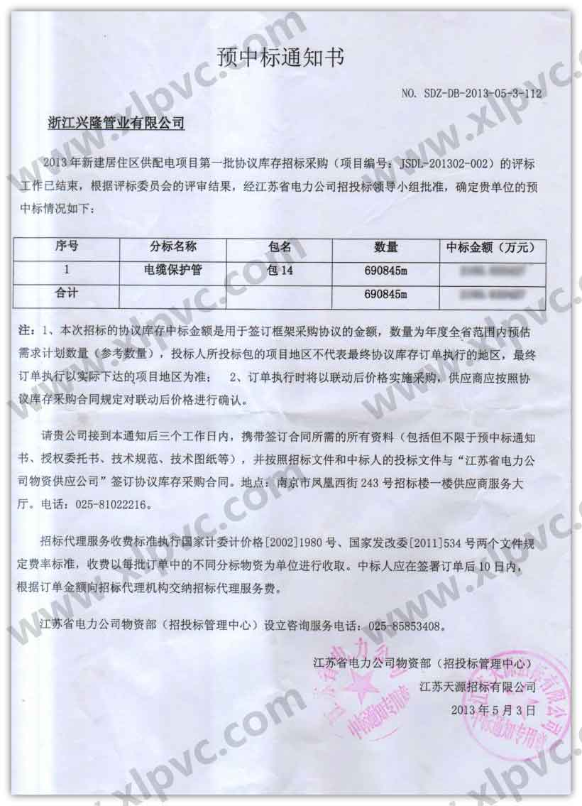 中標(biāo)通知書